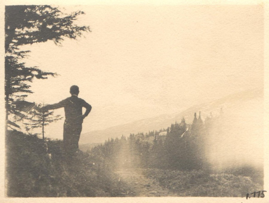 Dívá se ten neznámý muž na Pernštejn? Nebo je to snímek z ciziny?