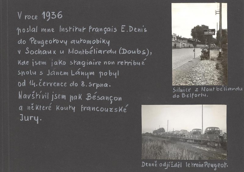V roce 1936 poslal mě Institut Francais E. Denis do Peugeotovy automobilky v Sochaux v Montbéliardu (Doubs), kde jsem jako staigaire non retribué spolu s Janem Lánym pobyl od 14. července do 8. srpna. Navštívil jsem pak Bésancon a některé kouty francouzské Jury.