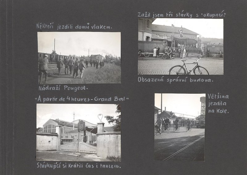 Obsazená správní budova. Někteří jezdili domů vlakem. Nádraží Peugeot. Většina jezdila na kole. „A partir des 4 heures – Grand Bal“. Stávkující si krátili čas i tancem.