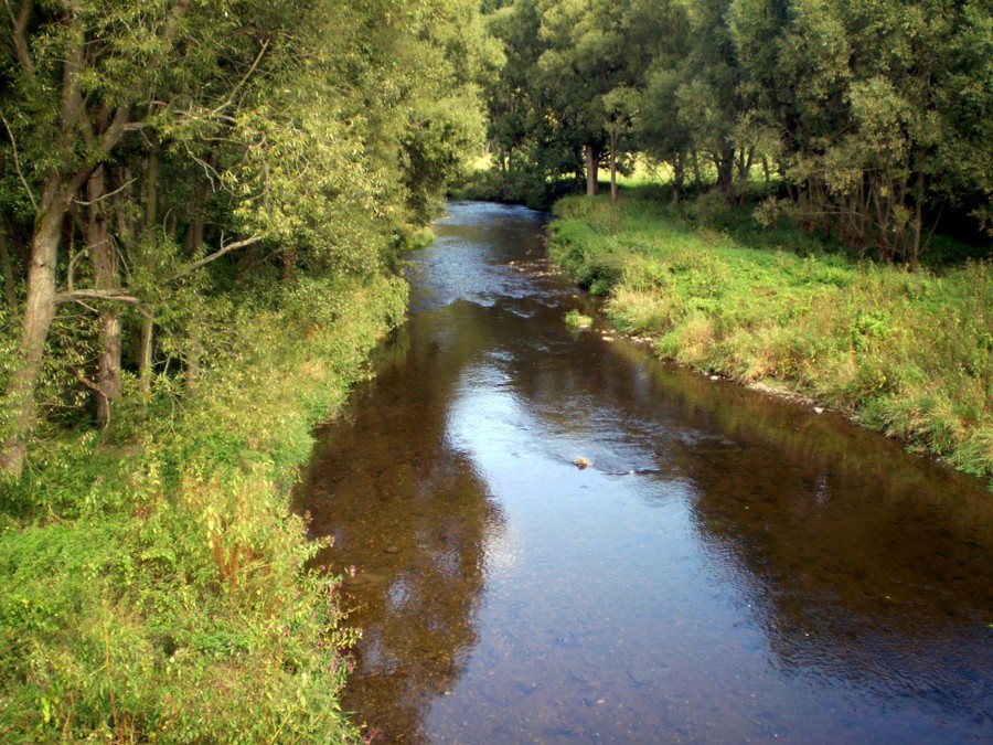 • Řeka Svratka nad mostem u Dalečína s přítokem od Cahova mlýna