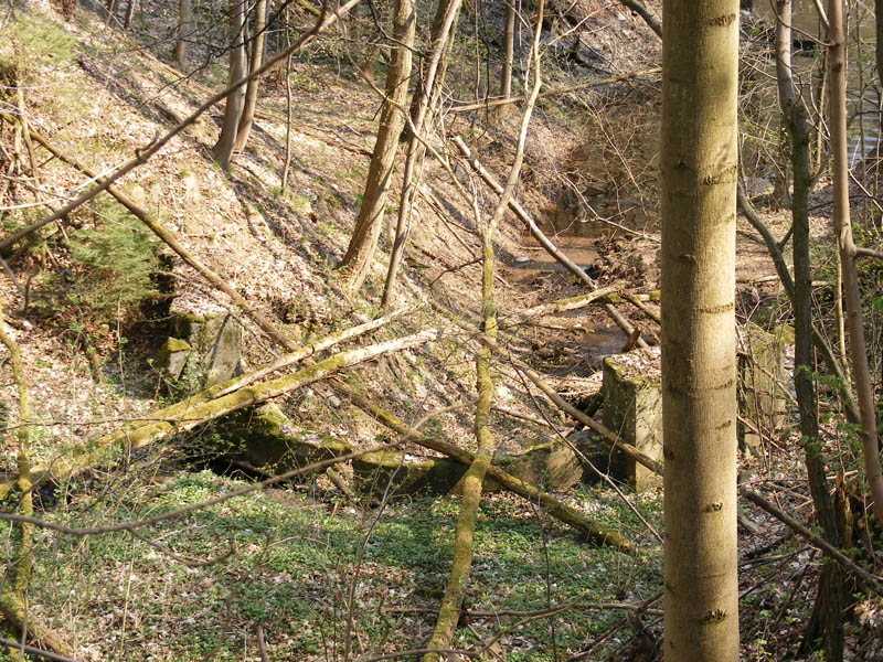 Ta již pouze drží nánosy bahna a písku, voda nevzrušeně protéká její prasklou hrází.