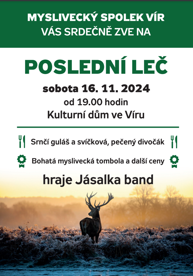 6. listopadu, 2024 publikoval Jitka Štouračová v rubrice Myslivecký spolek Vír