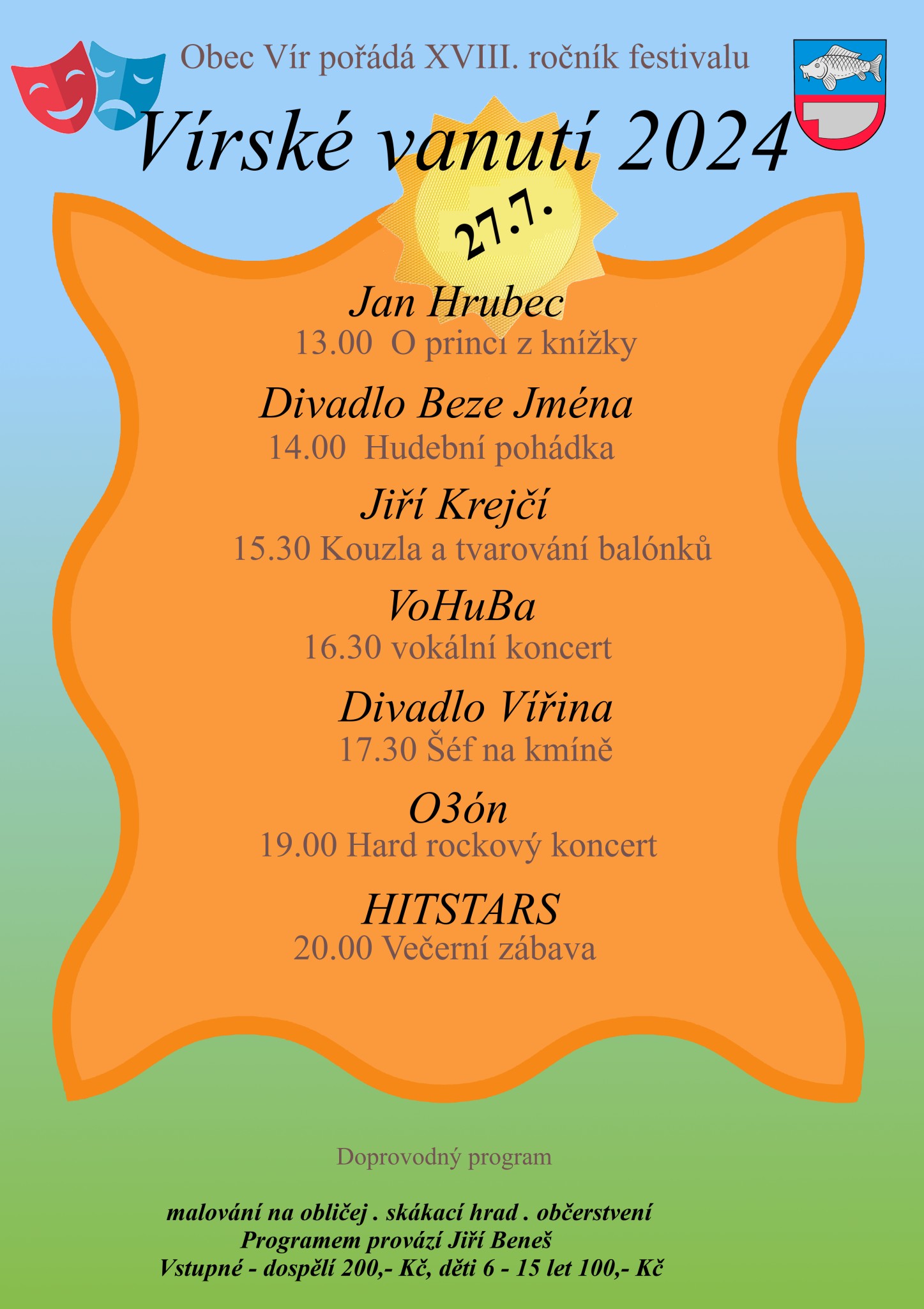 Můžete se dále těšit na malování na obličej, dílničky, pěnu od vírských hasičů, skákací hrady, stánky a bohaté občerstvení,…